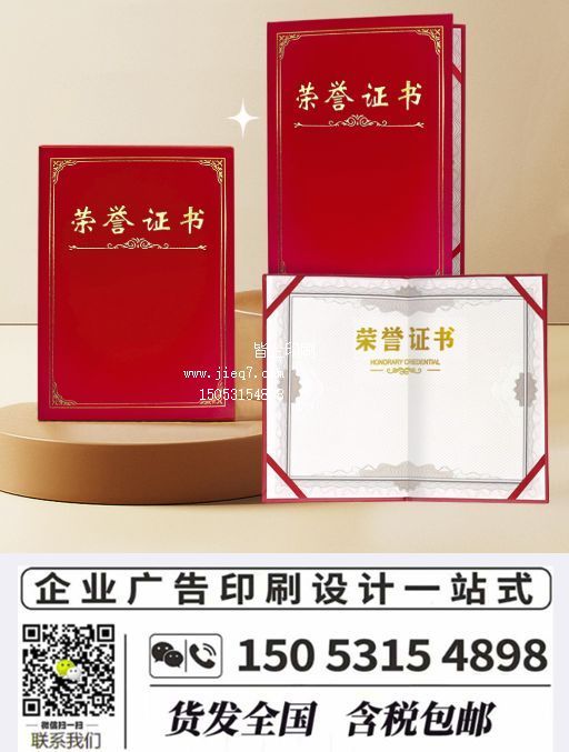 哈尔滨市 硬壳荣誉证书 印刷厂