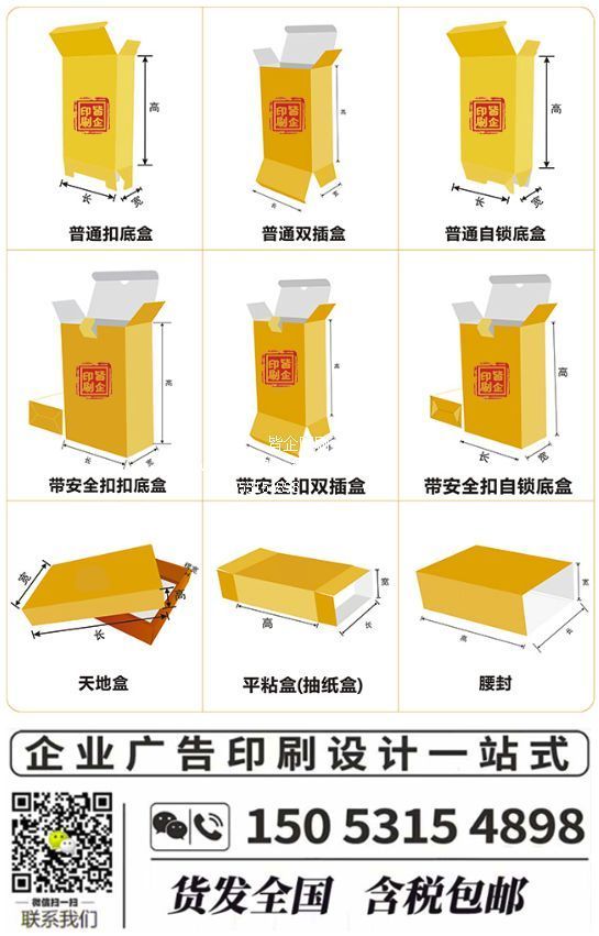 包装盒印刷设计型种类繁多,每种盒型都有其独特的设计特点和适用范围。
