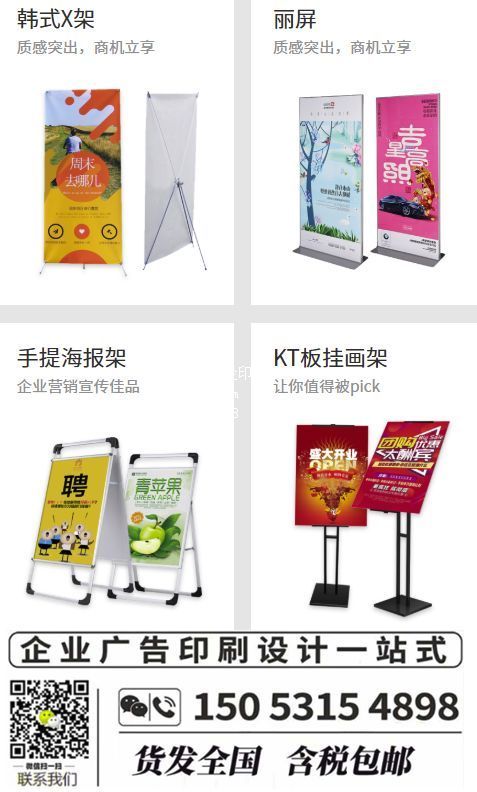展架写真喷绘有,X展架、韩式x展架、注水X展架、L展架等展架,山东济南学府广告印刷喷绘公司是一家专业从事广告展示销售。