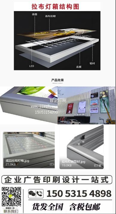 拉布灯箱框体:拉布灯箱是采用灯箱铝型材拼装的,拉布型材是属于四边开启式铝型材,有内嵌和外挂两种样式。型材厚度有3.5cm、7cm、8cm、9cm、10cm、12cm、17cm等。面盖有6cm、7.5cm、9cm、12cm等。型材颜色颜色有氧化色、铝本色、白色、黑色,特殊颜色可以喷涂定制。不同厂家的型材壁厚也不一样,天朗标识型材壁厚都是2mm,户外大型拉布灯箱专用铝型材有3mm。